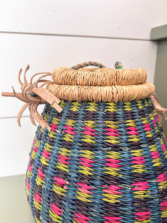 "Beautiful hand made basket, well crafted with quality materials. Very happy with my purchase."